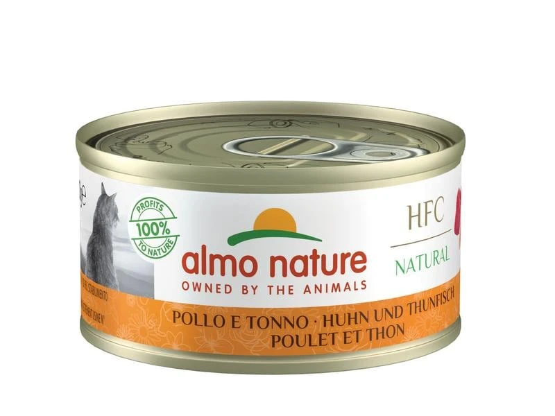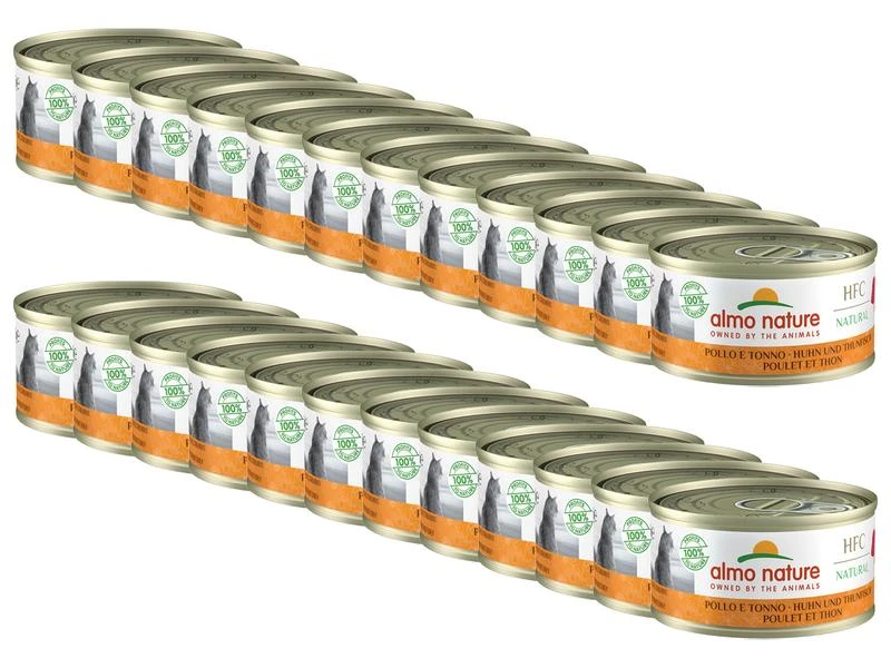 Almo Nature Nassfutter HFC Natural Huhn und Thunfisch, 24 x 70 g