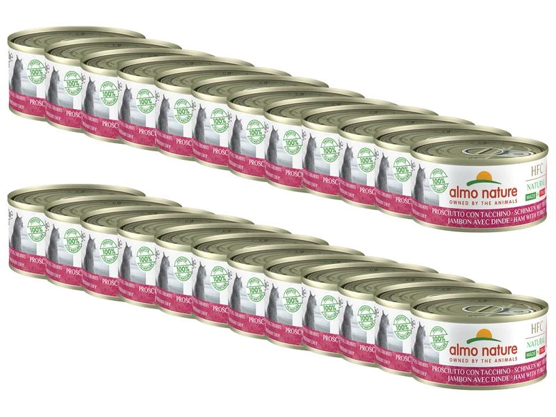 Almo Nature Nassfutter HFC Natural Italy Schinken mit Truthahn, 24×70 g