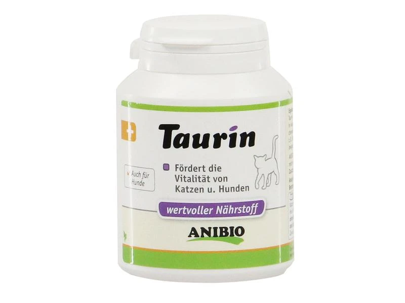 Taurin ist für Katzen lebensnotwendig. Die Katze ist nicht in der Lage (wie z.B. der Hund oder Mensch), Taurin im Körper selber zu bilden. Da der Taurin Gehalt in vielen Fertigfuttermitteln oftmals zu gering ist, um den entsprechenden Bedarf abzudecken, ist eine Beigabe über die Futterzufuhr sehr wichtig. ANIBIO Taurin unterstützt den Stoffwechsel, regt das Immunsystem sowie die Nieren- und Leberfunktion an und spielt eine grosse Rolle im Zentralnervensystem. Ein Mangel an Taurin kann langfristig z.B. zu Erblindung, Erkrankung des Herzmuskels oder Störungen im Immun- und Nervensystem führen. Der Wirkstoff Taurin spielt eine zentrale Rolle bei der Regulation des Nerven- und Immunsystems und regt zudem die Leber- und Nierenfunktion an. Taurin hilft im Körper bei der Aufnahme von Nahrungsfetten. Es dient als Informationsgeber im zentralen Nervensystem und ist an der Regulation der Körpertemperatur, Gehirnentwicklung, dem Erhalt der Sehfähigkeit und einer normalen Herzfunktion beteiligt. Taurin gehört zu den Aminosäuren, welche eine bedeutende Rolle bei der Unterstützung des Zellstoffwechsels und bei der Flüssigkeitsregulierung in den Körperzellen spielen. Entgegen der weit verbreiteten Meinung, dass die Gabe von Taurin nur bei Katzen sinnvoll wäre, zeigen neueste Studien, dass Taurin auch bei Hunden eine sinnvolle Unterstützung sein kann. Taurin kann für den Hund fallweise essentiell sein (z.B. zuchtbedingt bei bestimmten Rassen, im Krankheitsfall oder einer Unterversorgung). Prophylaxe bei Taurin Mangel – stärkt das Hundeherz.