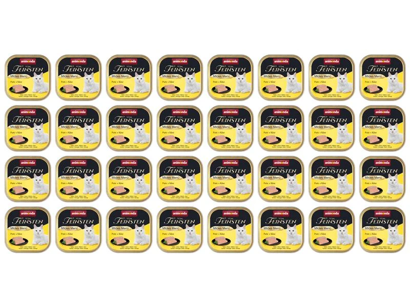 Vom Feinsten Adult Mildes Menü steht für ausgewogene, leckere gesunde Ernährung auf höchstem Niveau für ausgewachsene Katzen von 1 – 6 Jahren. Leckere Rezepturen ausschliesslich aus hoch verdaulichem Putenfleisch – ohne Innereien und Leber – bieten Katzen einen besonderen Genuss. Die fein-stückigen Pasteten versorgen die ausgewachsene Katze mit allen lebenswichtigen Nährstoffen. Mit Calciumcarbonat, einer natürlichen Calciumquelle, welche lebenswichtiges Calcium bereitstellt und Natriumchlorid, einer natürlichen Quelle für die lebensnotwendigen Mengenelemente Natrium und Chlorid.
