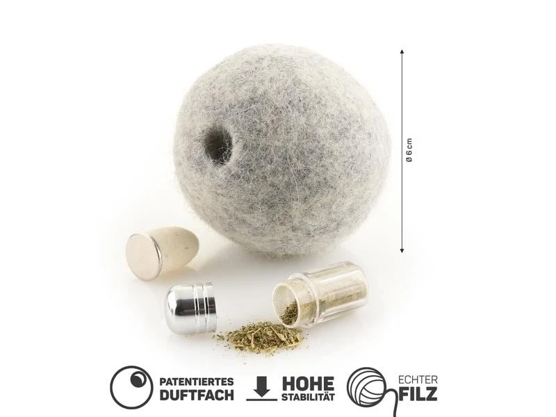 «Filzen» ist die älteste Textilverarbeitungstechnik der Welt und sorgt bei unseren Stubentigern für den grössten Spass. Filz ist einfach ein geniales und besonders artgerechtes Material für Katzenspielzeuge. Alle Filzprodukte von CanadianCat entstehen in Manufakturqualität und werden mit viel Liebe zum Detail und mit grosser Sorgfalt hergestellt. Katzen lieben das Material aus verschiedenen Gründen: Einerseits können sie es hervorragend greifen, mit einer einzigen Kralle umherschleudern, reinbeissen, es umhertragen, aber auch der natürliche Filzgeruch ist für feine Katzennasen ein Hochgenuss und hat einen extrem hohen Sympathiefaktor. Dieser wird durch die Verwendung von Katzenminze im Duftfach noch verstärkt. CanadianCat verwendet nur allerfeinste Wolle, die robust von Hand nass gefilzt wird und sogar für extrem rabiate Katzen perfekt geeignet ist.