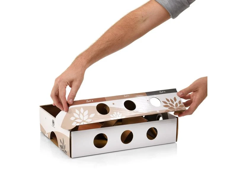 Schauen Sie Ihrer Katze zu, wie sie geschickt die Leckerchen aus der MagicBox fischt! Schnüffeln, Futter suchen & „Beute“ fangen – Aktivität durch Spielen und Futtersuche!