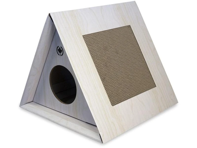 Mit verbesserter Stabilität, optionalen Kratzflächen und einem innenliegenden Rückzugsort ein würdiger Nachfolger unserer Bestseller. Das Triangle House ist in wenigen Minuten zusammengebaut. Der grosszügige Eingang bietet Ihrem Stubentiger Zugang zu einem Rückzugsort wo es sich Schlummern und Relaxen lässt. Hochwertige Kratzpappe an gleich drei Flächen lädt zum Krallenschärfen ein und rundet das Triangle House ab. Schonen Sie Ihre Möbel und geben Sie Ihrer Katze eine Möglichkeit zum Krallenwetzen.