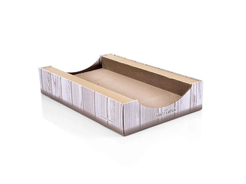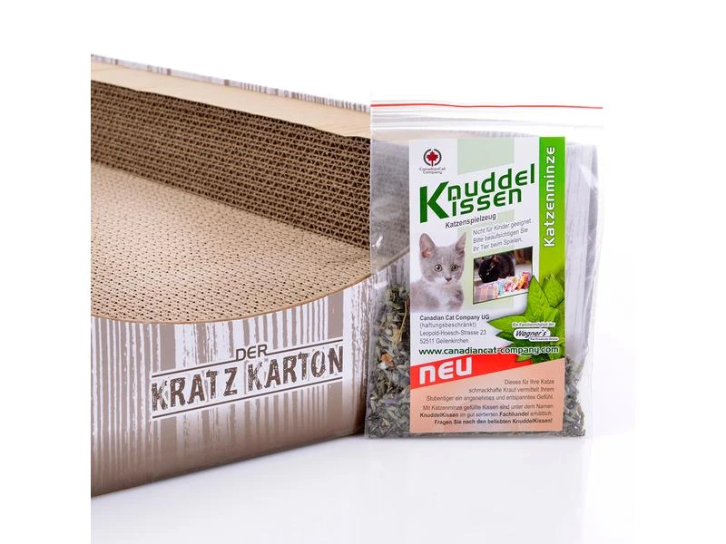 Der Kratzkarton von der CanadianCat Company ist das ideale Einsteigermodell. Ob als Lounge zum gemütlichen «chillen» oder als, im wahrsten Sinne des Wortes, Kratzkarton – Ihre Katze wird den Kratzkarton der CanadianCat Company lieben! Die beiden Seitenteile und der Boden sind herausnehmbar und können so gewendet werden. Hierdurch hält der Kratzkarton nochmal doppelt so lang. CanadianCat Company ist ein echtes Naturprodukt! Ein wahrer Katzentraum. Jeder Katzenbesitzer kennt die Vorliebe fast jeder Katze für Kartons. Selbst in die kleinsten Kartons versuchen Katzen zu schlüpfen. Unzählige Youtube – Videos zeugen von dieser instinktiven Vorliebe. Die Idee zur Herstellung von Kratzmöbeln und Brettern aus Wellpappe ist daher nahezu genial. Zumal die Wellpappe eine unfassbare Stabilität besitzt. Für die Katze ist ein CanadianCat Company – Kratzbrett mehr als “nur ein Kratzbaum». Katzen bevorzugen bzw. lieben Kartons aus Wellpappe und nehmen die Kratzbretter meist sofort in Beschlag. Die besonders feste Oberflächenstruktur nimmt auch grosse Belastungen ganz problemlos auf und bietet der Katze die ideale Möglichkeit zum Krallen und Kratzen, egal wie gross oder schwer die Katze ist. Die meisten Katzen schliessen ihre CanadianCat Company Kratzbretter sofort ins Herz. Öfters kommt es zu kleinen Rivalitäten zwischen mehreren Katzen, sollten Sie mehr als eine Katze besitzen empfiehlt es sich jedem Tier ein Kratzbrett zur Verfügung zu stellen. Viel Bewegung, Spielen und Spass sind ein wichtiger Aspekt für die Gesunderhaltung Ihrer Katze. Ein Kratzbrett regt neben der effektiven Krallenpflege auch den natürlichen Spieltrieb von Katzen an. CanadianCat Company Kratzbretter werden überdurchschnittlich stark von den Katzen bekrallt und bekratzt.