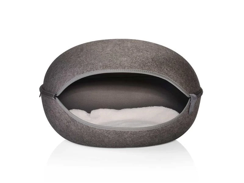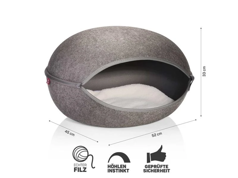 Die mit hochwertigem Filz ummantelten Katzennester gibt es in zahlreichen Farbkombinationen. Ob modisch zweifarbig in angesagten Trendfarben oder uni, in gedeckten Erdtönen, alle Farbkombinationen werden mit einem kuschelweichen Innenkissen geliefert.