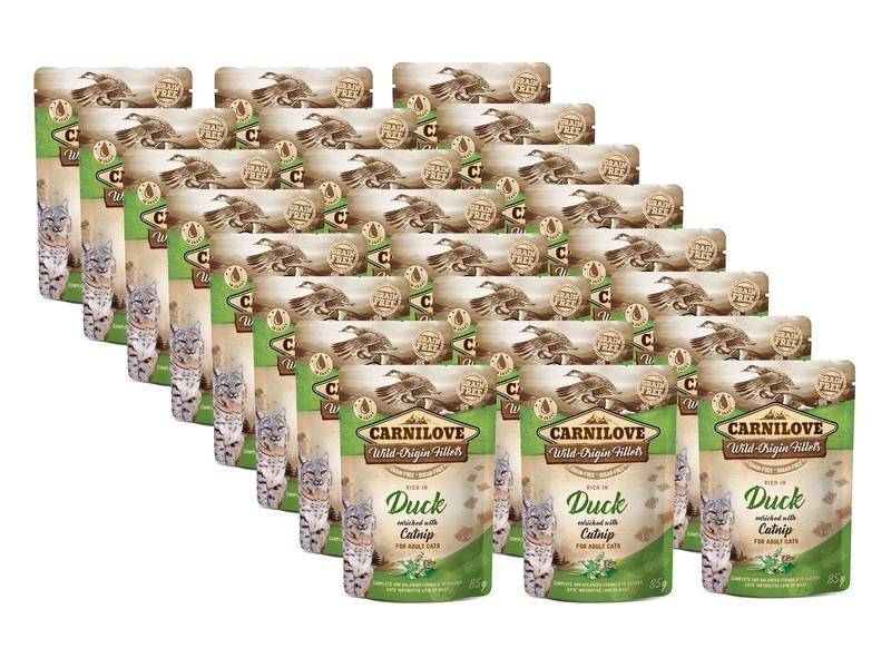 Die Carnilove Pouches mit viel Wildfleisch-Anteil sind besonders lecker und schmecken Katzen als vollwertiges Alleinfutter oder auch in Kombination mit Carnilove Trockenfutter.