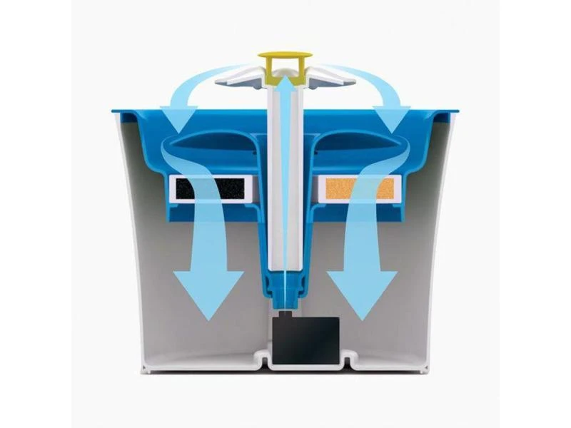 - Mit dreifach wirksamem Filter, damit das Wasser zu jeder Zeit sauber ist