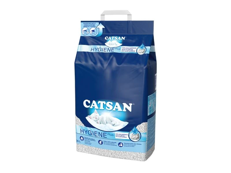 Catsan Hygiene plus besteht aus natürlichem Quarzsand und Kalk, die Catsan Hygiene plus die natürliche, weisse Farbe geben. Die Hygienekörnchen von Catsan Hygiene plus geben Ihnen die Sicherheit, dass keine gefährlichen Fasern oder andere unverträgliche Stoffe enthalten sind.