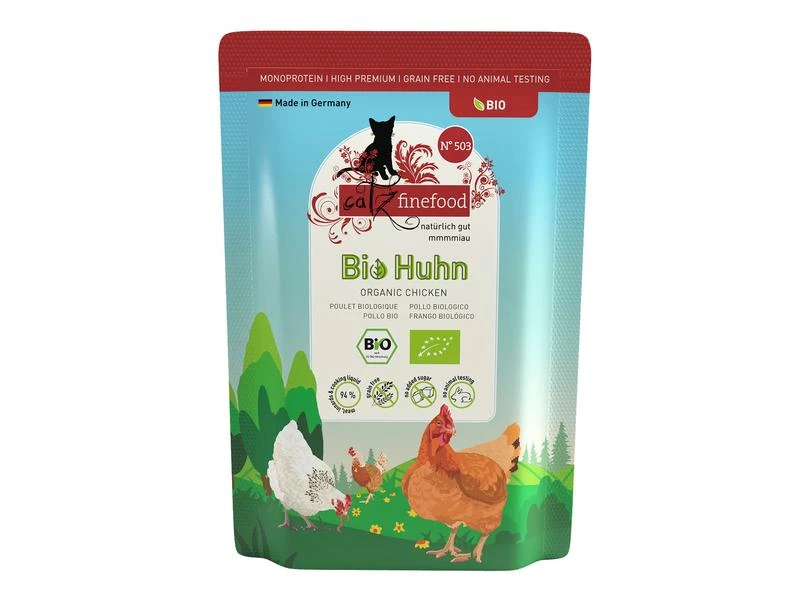 Die ausgewogene Rezeptur ist ideal auf die Bedürfnisse von Katzen zugeschnitten. Jegliches Fleisch, Innereien, sowie die katzengerechten geringen Anteile von Obst und Gemüse stammen aus ökologisch zertifizierter Landwirtschaft. Natürlich gentechnik-frei. Katzen lieben den intensiven Geschmack des frisch verarbeiteten Bio-Fleisches und -Innereien. Auch ernährungssensible oder von Futtermittelallergien betroffene Samtpfoten dürfen catz finefood BIO geniessen, denn jede Geschmacksrichtung basiert auf einer Fleischsorte und die transparente Deklaration erleichtert die Auswahl der passenden Sorte für Ihr Tier.