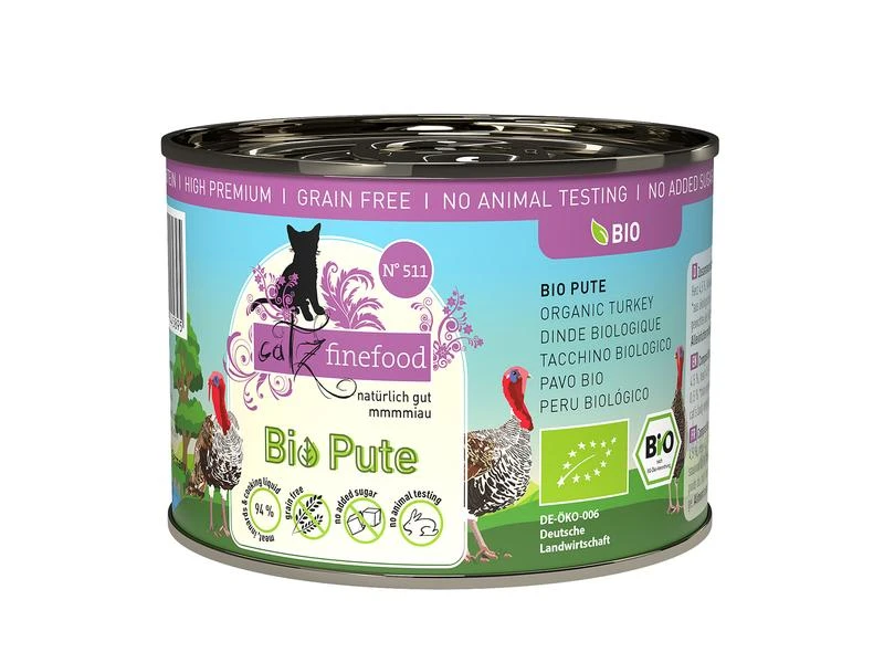 Die ausgewogene Rezeptur ist ideal auf die Bedürfnisse von Katzen zugeschnitten. Jegliches Fleisch, Innereien, sowie die katzengerechten geringen Anteile von Obst und Gemüse stammen aus ökologisch zertifizierter Landwirtschaft. Natürlich gentechnik-frei. Katzen lieben den intensiven Geschmack des frisch verarbeiteten Bio-Fleisches und -Innereien. Auch ernährungssensible oder von Futtermittelallergien betroffene Samtpfoten dürfen catz finefood BIO geniessen, denn jede Geschmacksrichtung basiert auf einer Fleischsorte und die transparente Deklaration erleichtert die Auswahl der passenden Sorte für Ihr Tier.