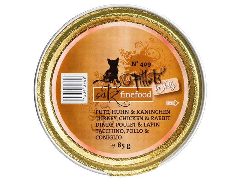 Mit catz finefood Fillets in Jelly servieren Sie Ihren Samtpfoten schmackhaftes Filetfleisch in delikatem Gelee. Natürliche Zutaten und die Verwendung von bestem Filetfleisch sorgen für grosse Akzeptanz auch bei besonders wählerischen Katzen. Viele Stubentiger und Outdoor-Abenteurer lieben zartes Filetfleisch, jedoch sind die meisten erhältlichen Katzenfutter dieser Art nur Ergänzungsfutter. Dieses Futter ist ein ausgewogenes Alleinfutter, das Ihre Katze mit allen Nährstoffen versorgt. Aus diesem Grund ist es für die dauerhafte tägliche Fütterung geeignet. Auch futtersensible Katzen dürfen in den Genuss kommen, da die Rezeptur kein Getreide und keinen Reis enthält.