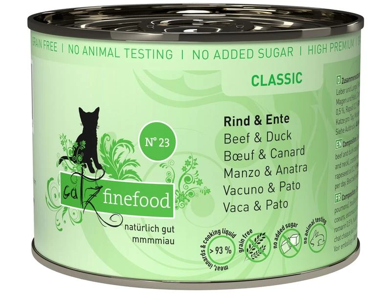 Garantiert ohne Konservierungsstoffe, ohne Geschmacksverstärker und ohne Farbstoffe. Gentechnikfrei. catz finefood ist ein hochwertiges und artgerechtes Nassfutter für Katzen, das in enger Zusammenarbeit mit Ernährungswissenschaftlern für Katzen und Tierärzten entwickelt wurde.
