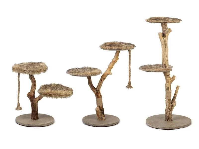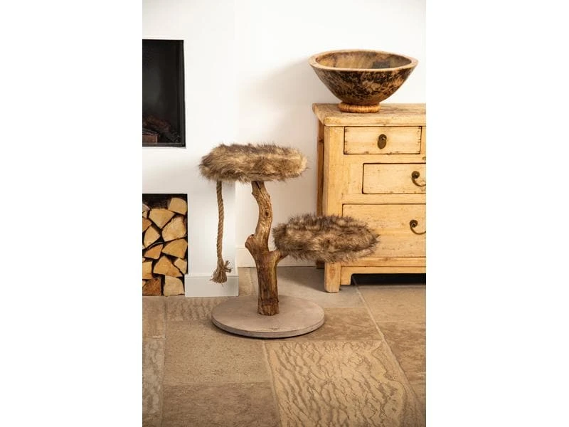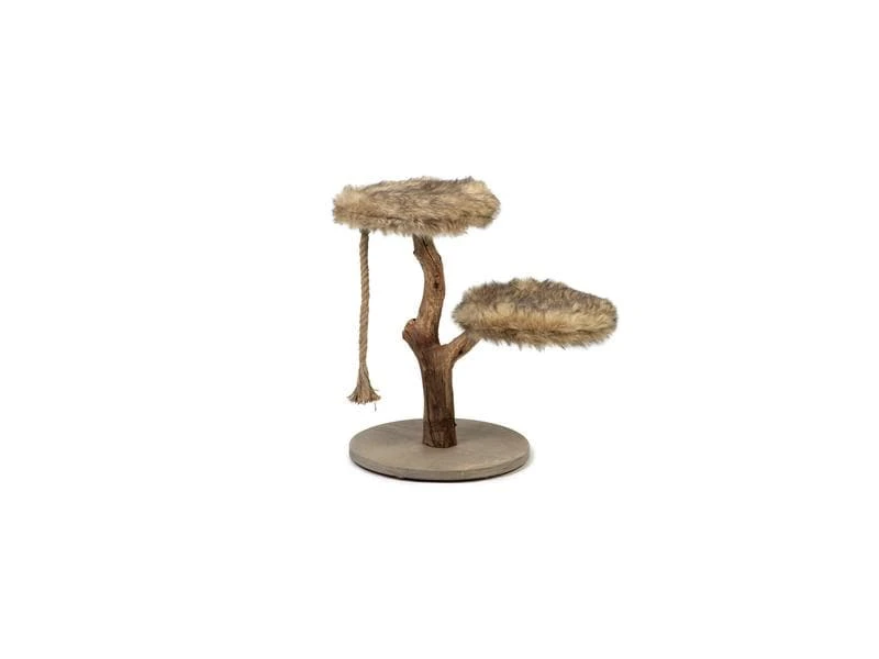 Sie wollen keinen normalen Kratzbaum, sondern etwas ganz Besonderes für Ihre Katze? Dann ist der Designed by Lotte Aviva Kratzbaum die richtige Wahl für Sie. Diese Möbel entsprechen dem neuesten Trend, natürliche Materialien zu verwenden. Aus diesem Grund ist jeder Stamm ein Unikat (das Produkt kann leicht von der Abbildung abweichen). Dieser hölzerne Kratzbaum hat zwei Plattformen, die Ihre Katze nutzen kann, um alles im Auge zu behalten oder um sich auszuruhen. Diese Plattformen sind mit einer Abdeckung versehen, so dass es für Ihre Katze bequemer ist. Ausserdem gibt es auch ein Seil, mit dem Ihre Katze spielen kann. Mit diesem Kratzbaum haben Sie einen echten Blickfang im Haus. Nicht nur schön für Ihre Katze, sondern auch eine Bereicherung für das Interieur.