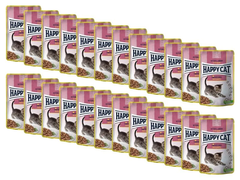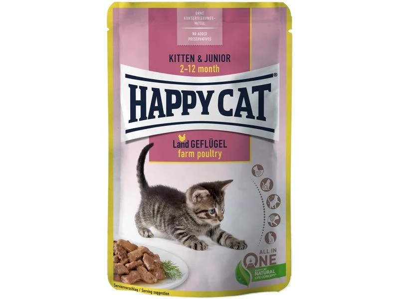 Happy Cat Nassfutter Meat in Sauce Kitten & Junior Geflügel, 24 x 85 g