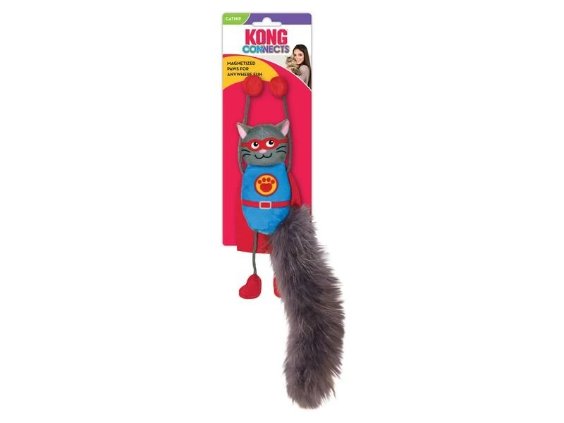 Der KONG Magnicat bewahrt Katzen vor Langeweile dank magnetischer Pfoten, mit welchen er hängen bleibt und gleichzeitig endlos unterhaltsame Vielfalt bietet. Unwiderstehlich baumelnde Beine und ein beweglicher Schweif animieren und belohnen instinktives Schlagen, während Knistergeräusche das natürliche Jagdverhalten belohnen. Knistergeräusche und KONG North American Premium Catnip lassen die Heldentaten länger andauern.