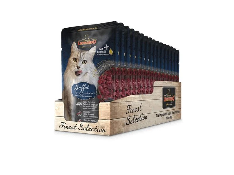 Leonardo Cat Food Nassfutter Büffel & Blaubeeren, 16 x 85 g