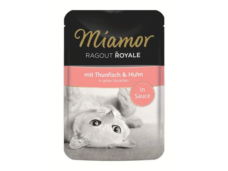 Zarte Ragout-Stückchen in leckerer Sauce zubereitet, ein königlicher Genuss mit viel Thunfisch und Huhn. Vitamin-Schonverfahren.