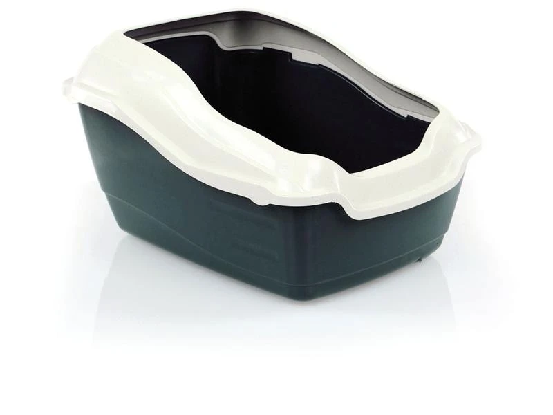 Katzentoilette mit extra hohem Scharrrand. Der Schutzrand ist leicht abnehmbar zur einfachen Reinigung. Die hohe Rückseite und der Schutzrand sorgen dafür, dass alles in der Katzentoilette bleibt, auch wenn die Katze mal im Stehen uriniert oder Ihr Geschäft intensiv verscharrt. Ein offenes Katzen WC bietet Ihrer Katze einen einfachen Einstieg und einen guten Überblick während sie ihr Geschäft macht. Ein Rundumblick entspricht den Vorlieben und dem natürlichen Trieb Ihrer Katze.