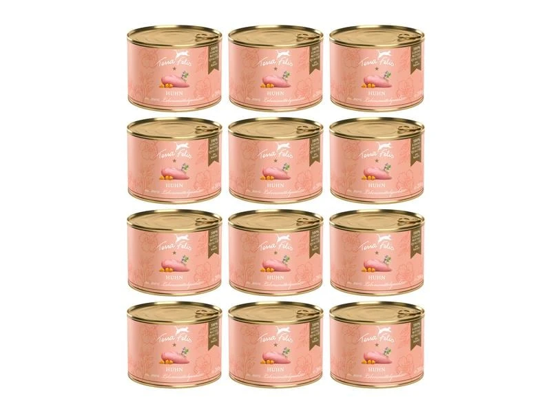 Die getreidefreien Terra-Felis-Menüs bieten mit 90% frischem Muskelfleisch und wertvollen Innereien einen sehr hohen Fleischanteil. Dies bietet der Katze als reinem Fleischfresser die für sie wichtigen Omega-6-Fettsäuren und viel tierisches Protein, das zur Energiegewinnung und für sämtliche Stoffwechselprozesse benötigt wird. Für eine gesunde Darmfunktion und Darmperistaltik benötigt die Katze eine geringe Menge an Ballaststoffen. Alle Terra-Felis-Menüs werden daher um eine ausgewählte Gemüsesorte sowie Katzenminze ergänzt. Abgerundet werden die Mahlzeiten durch die Zugabe von Taurin und Rapsöl, das reich an Omega-3-Fettsäuren ist. Es werden ausschliesslich Rohstoffe in 100% Lebensmittelqualität verwendet. Diese Qualität und Frische spiegelt sich in dem köstlichen und feinen Geruch der Menüs wider und führt zu einer guten Akzeptanz bei Katzen.