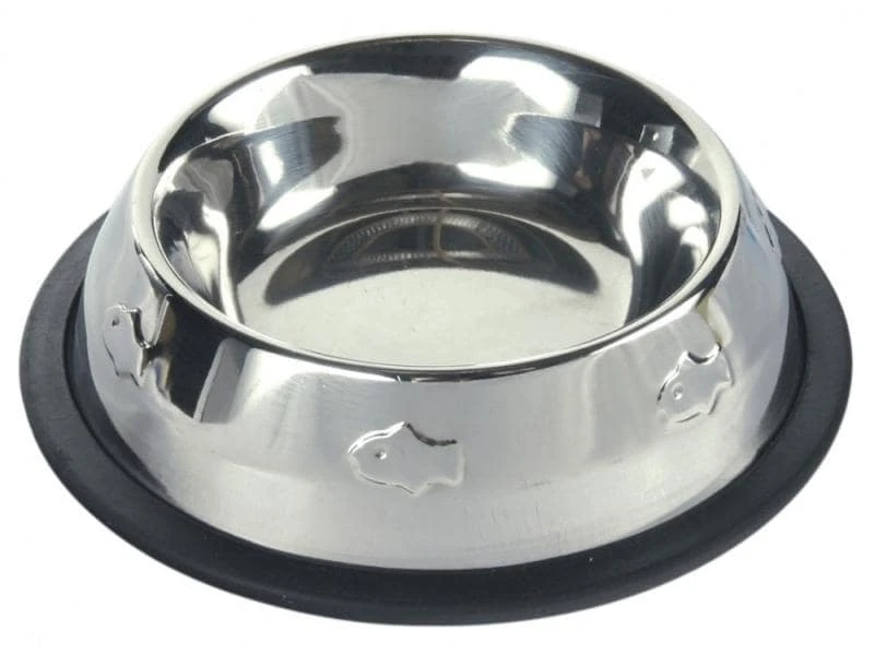 Dieser Futternapf wurde aus rostfreiem Edelstahl gefertigt und mit einer Prägung versehen. Er ist dank einem Gummiring rutschfest und hält damit ideal am Boden fest, wenn Ihre Katze daraus trinkt oder isst.
