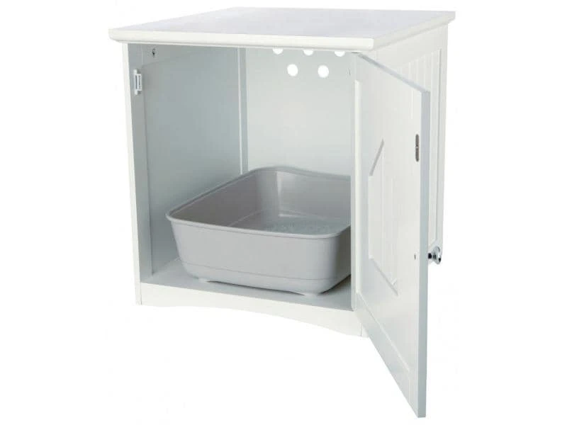 Im Katzenhaus von Trixie findet Ihre Katze ein wahrhaft stilles Örtchen. In der stilvollen Katzen-Toilette herrscht dank den Belüftungslöchern in der Rückwand stets eine gute Luftzirkulation und der Katzensand bleibt da, wo er hingehört – in der Katzen-Toilette. Die Türe schliesst mit einem Magnetverschluss und ist gross genug, damit Sie auch den Innenraum gut reinigen können. Mit einem Kissen ausgestattet kann das schicke Katzenhaus auch als Schlafhaus für die Katze dienen. Innenmasse: Breite 43 cm, Höhe 44 cm, Tiefe 49 cm