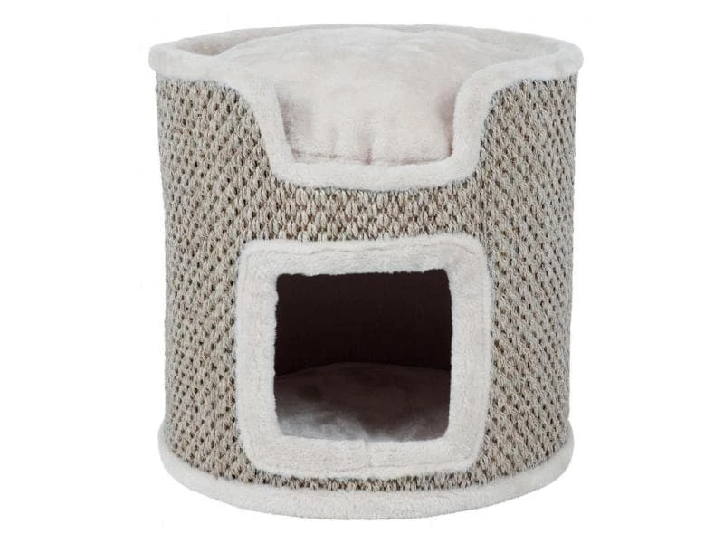 Die Kratztonne Ria bietet was das Katzenherz begehrt und ist eine stylische Alternative zu einem gewöhnlichen Kratzbaum. In der Höhle, ausgestattet mit einem Plüsch-Bezug kann sich Ihr Stubentiger zurückziehen und sich ausruhen. Die oberste Ebene ist mit einem Wendekissen ausgestattet auf dem sich Ihre Katze hinlegen kann und den Ausblick geniesst. An der Sisalkratzfläche kann sie sich ausgiebig die Krallen wetzen.