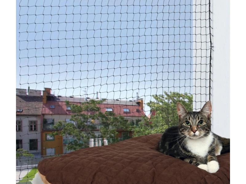 Das strapazierfähige Schutznetz von Trixie bietet Ihren Katzen erhöhte Sicherheit am gekippten Fenster und an allen anderen gefährlichen Orten, wo sie entweder Gefahr laufen, in die Tiefe zu stürzen oder Bereiche zu erkunden, die nicht für sie gedacht sind. Das Schutznetz eignet sich aufgrund der engen Maschenstruktur auch für kleine Katzen und ist darüber hinaus strapazierfähig und uv-beständig. Die für die Installation benötigten Utensilien wie Haken, Dübel und Befestigungsleine sind bereits im Lieferumfang enthalten.