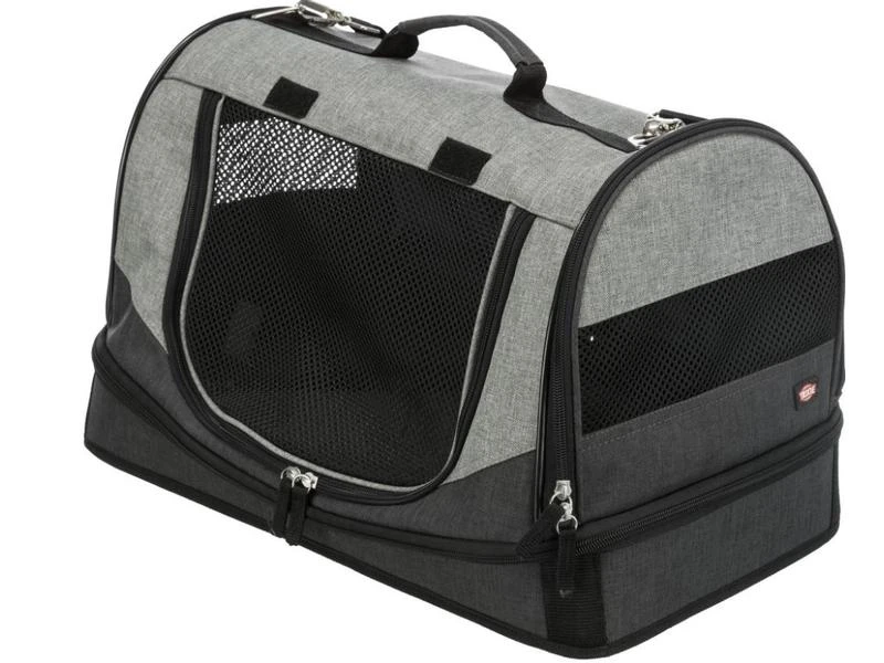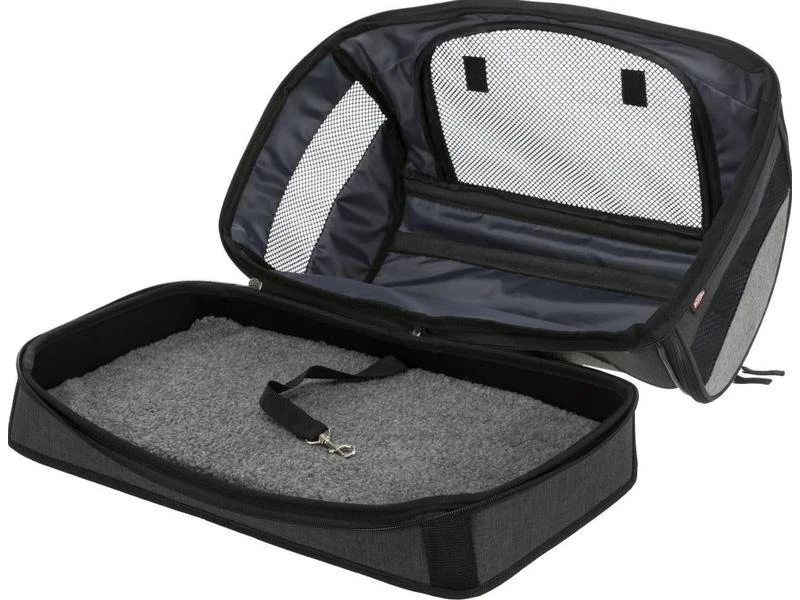 In der Tasche Holly können Sie Ihren Vierbeiner sicher und bequem transportieren. Ausgestattet mit einer herausnehmbaren, gepolsterten Bodenplatte in Lammfell-Optik und Netz-Einsätzen, die für optimale Luftzufuhr sorgen, gestaltet die Tasche den Transport für Ihren Hund besonders angenehm. Der abnehmbare, stufenlos verstellbare Schulterriemen lässt sich individuell auf Ihre Bedürfnisse einstellen. Eine integrierte Kurzleine verhindert das Herausspringen Ihres Hundes. Die Abdeckung ist durch den Reissverschluss komplett abnehmbar und kann so als Reisebett für Ihren Liebling dienen. In zwei seitlich angebrachten Taschen haben Sie Platz, einige Kleinigkeiten in greifbarer Nähe aufzubewahren.