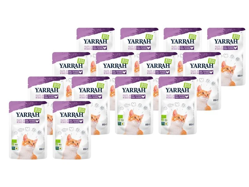 Biologische Truthahnnfilets in Sosse für Katzen. Erhältlich im praktischen Beutel. Für alle ausgewachsenen Katzen geeignet. Das Bio-Nassfutter ist eine vollwertige, nahrhafte und sehr schmackhafte Mahlzeit für Ihre Katze. Reines Bio-Futter und somit ohne Zusatz von chemische Duft-, Farb- und Geschmacksstoffe, Pestizide und genetisch modifizierten Organismen, für das die am schnellsten aufnehmbaren Proteine ausgewählt wurden. So bekommt Ihre Katze genau das, was sie braucht. Yarrah empfiehlt Nassfutter für jede Katze. Nassfutter ist reich an Feuchtigkeit und hilft Ihrer Katze dabei, ausreichend hydriert zu bleiben. Besonders ältere Katzen und Katzen, die wenig trinken, profitieren von einer täglichen Portion Nassfutter.